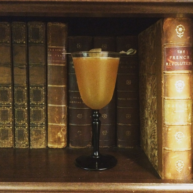 I call it, “High Tea Lady.” Milk-washed earl grey vodka, lemon syrup, lemon and pomelo juices, grapefruit bitters, candied ginger. Milk-washing makes this tea cocktail frothy and aromatic without the astringency.